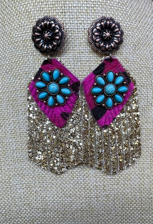 Rhinestone Cowhide Earrings (BROWN)