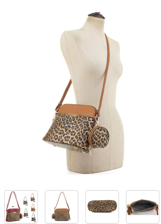 LEOPARD CROSSBODY PURSE W/ COIN BAG
