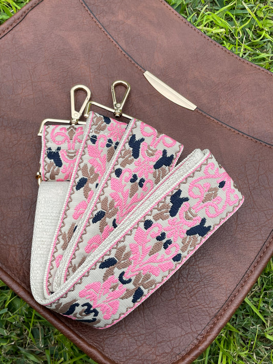 EMBROIDERY BAG STRAP - NAVY/PINK