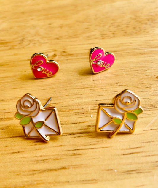 LOVE WITH HEART STUD EARRINGS-ZIRCONIA
